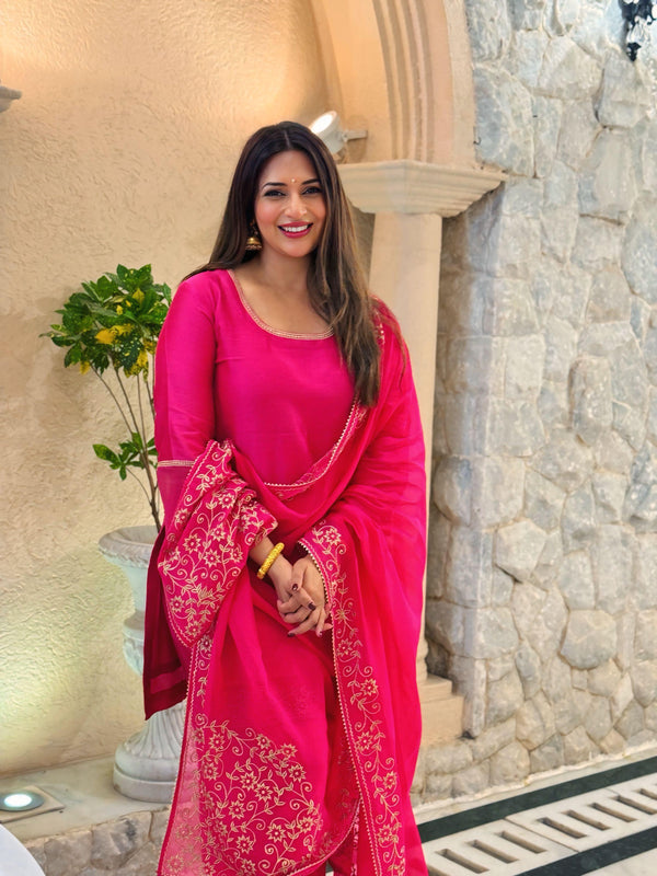 Contents: This ensemble includes a Kurta, a Palazzo & a Dupatta