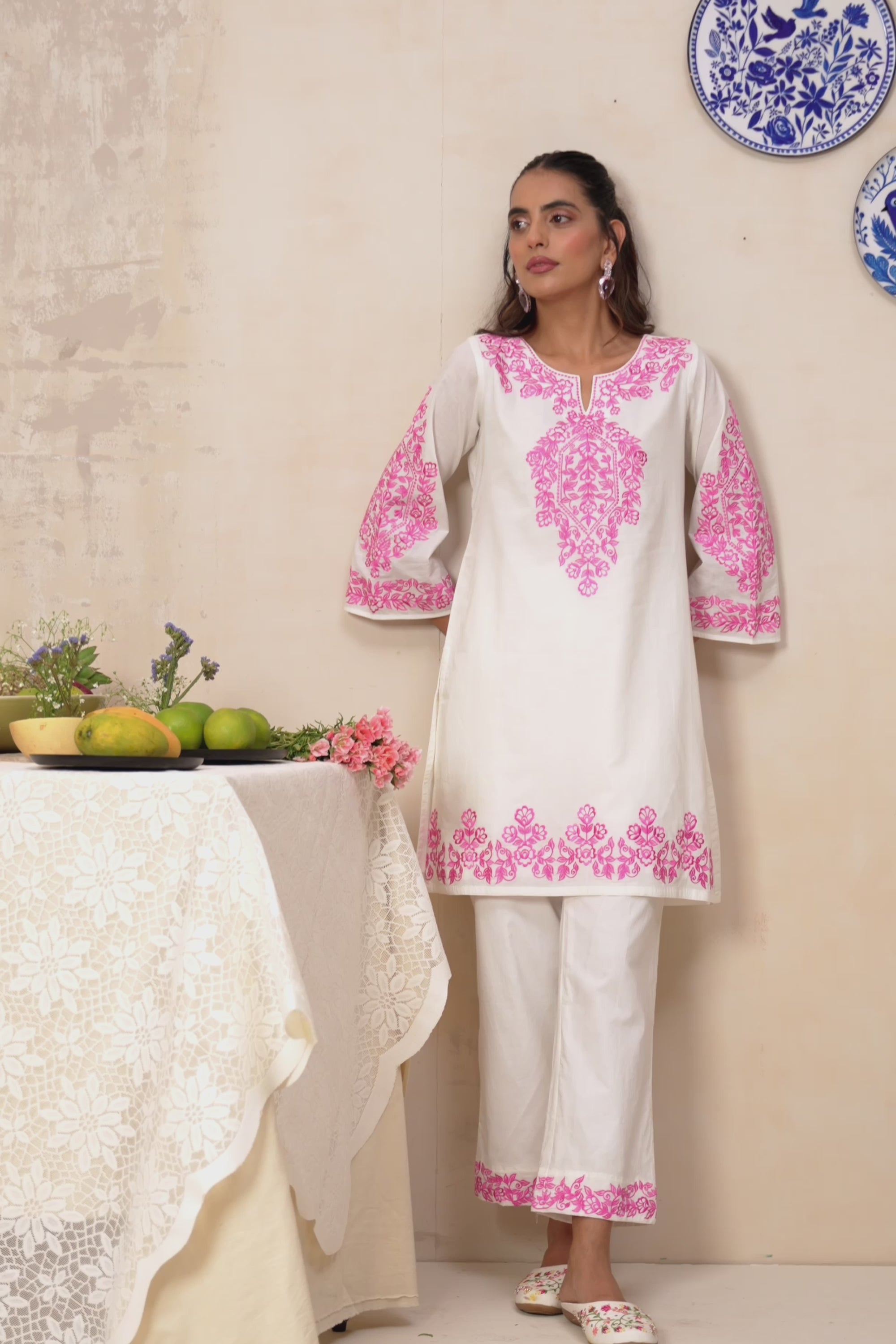 Gabrielle White & Pink Embroidered Kurta Set