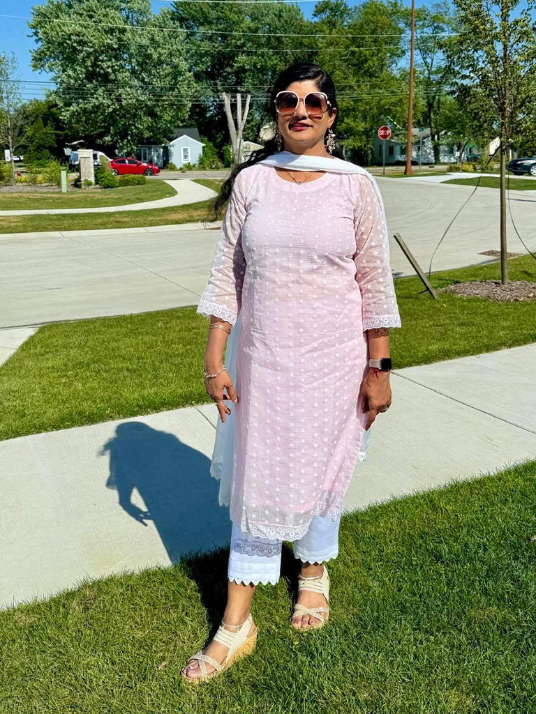 Contents: This ensemble includes a Kurta, a Palazzo & a Dupatta